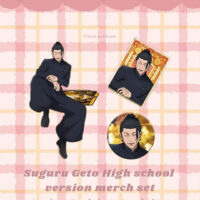 Celebrate the iconic early days of the strongest sorcerer duo with Gojo and Geto Tokyo Jujutsu High School Version merch set inspired by Jujutsu Kaisen. Set Includes Acrylic keychain x 1 75mm character badge x 1 16cm standee x 1 Vibrant, high-quality print with durable finish