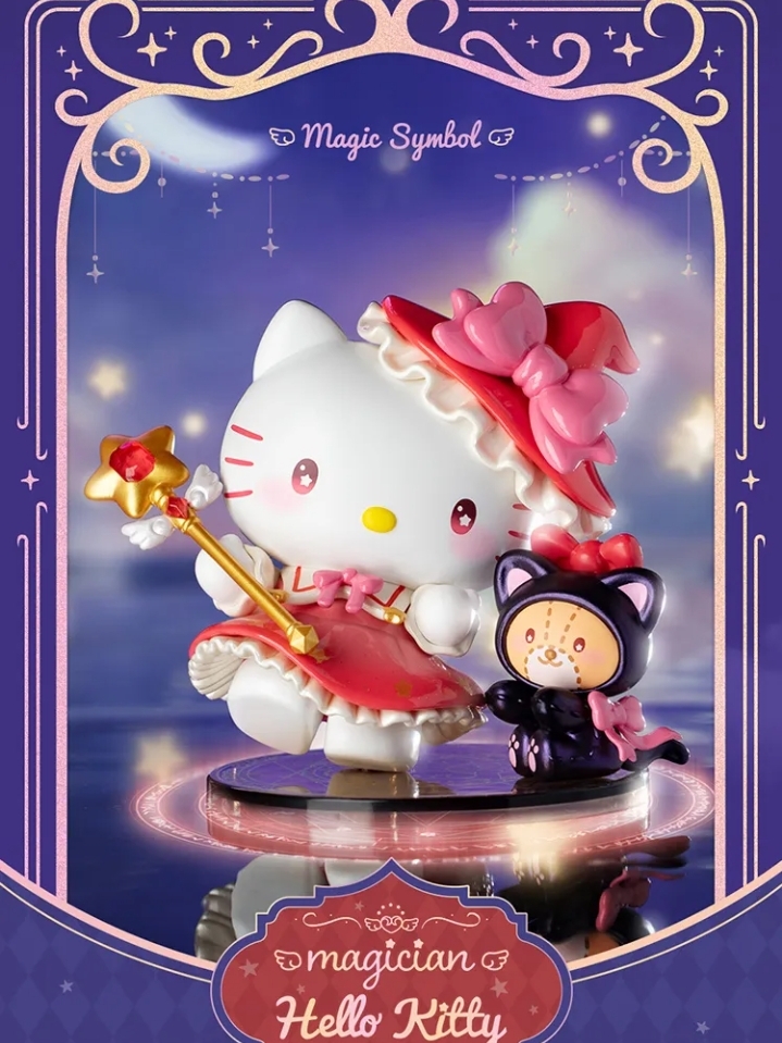 This enchanting blind box collection features beloved Sanrio characters dressed as little magicians, surrounded by starry night details, whimsical poses, and dreamy colors that feel straight out of a fairytale.